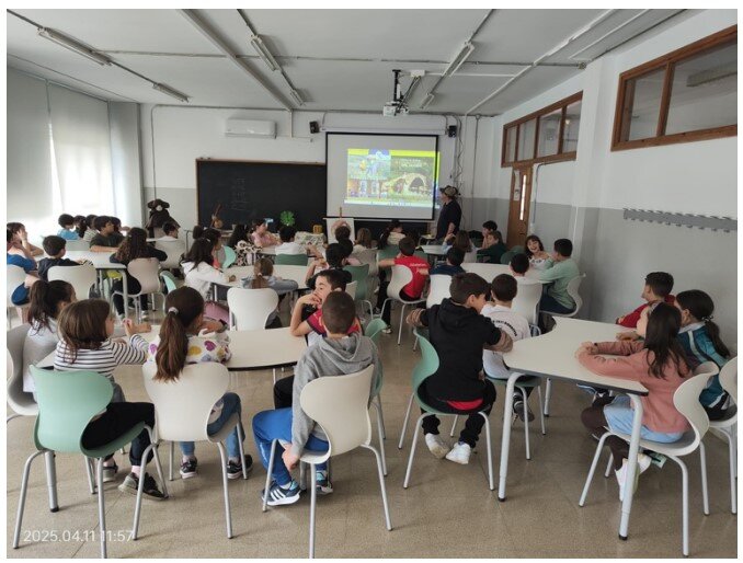 😄 Para finalizar la charla, invitó a nuestro alumnado a realizar con sus familias los distintos tramos del camino francés por Aragón, visitando los pueblos por los que pasa, además de descargar el cuadernillo de las “Escuelas peregrinas”.