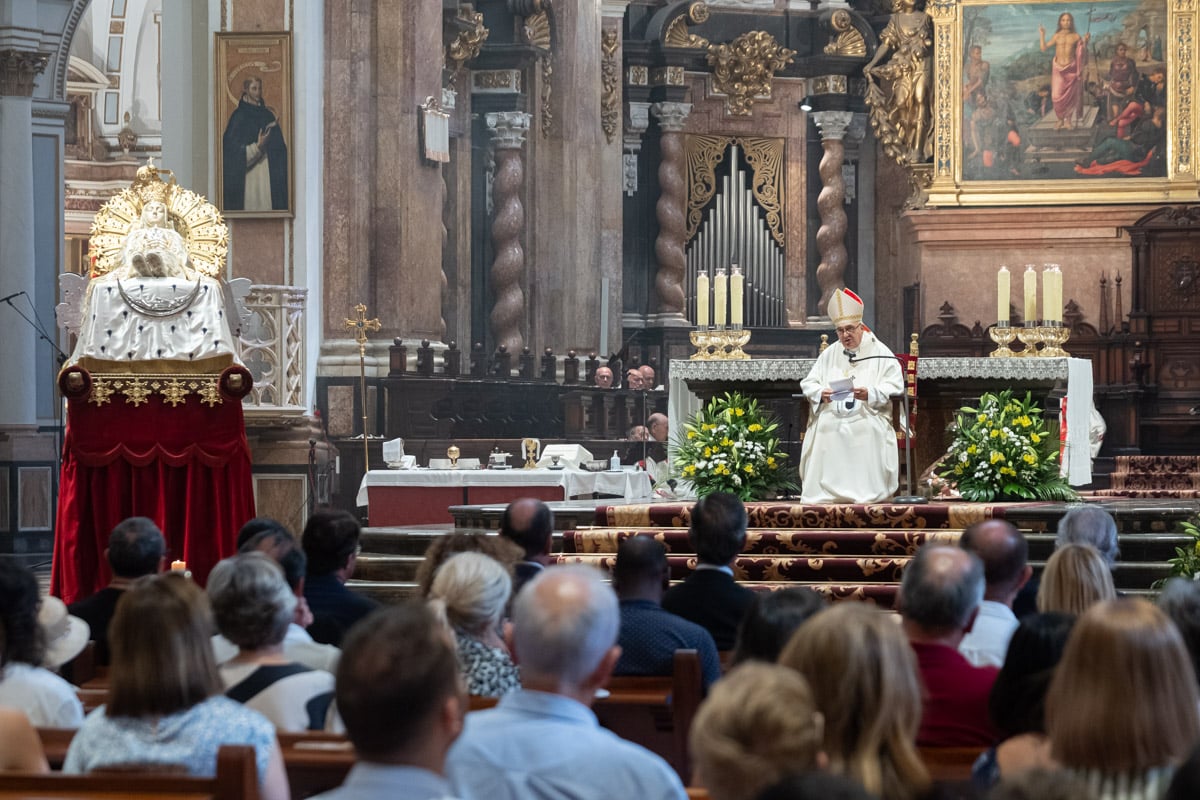 El arzobispo de Valencia, monseñor Enrique Benavent, ha presidido la celebración de la solemnidad litúrgica de la Asunción de la Virgen en la Catedral, a cuya advocación fue dedicada el templo por voluntad del rey Jaume I al reconquistar la ciudad el 9 de octubre de 1238