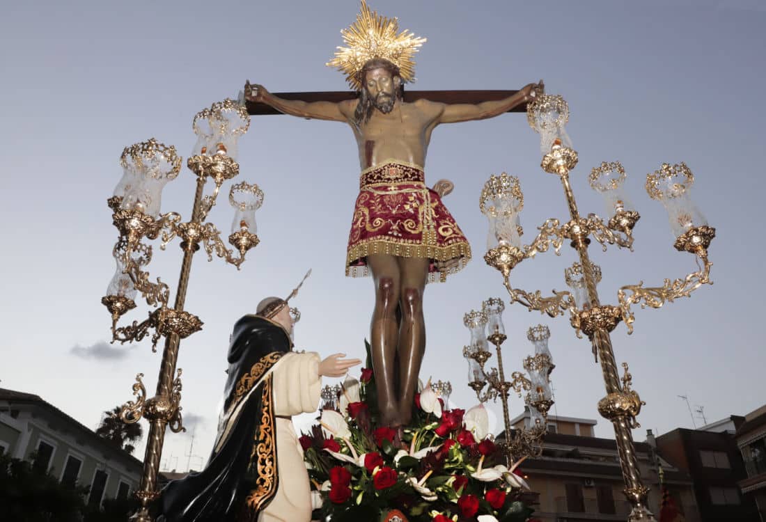 El domingo 14 de septiembre, los actos comenzarán con una mascletá en el parque Central, que contará con la presencia especial del Santísimo Cristo de la Fe. A las 19 horas la imagen será trasladada desde la parroquia de San Pedro Apóstol hasta la Plaza Ingeniero Castells, donde tendrá lugar la solemne eucaristía. En esta ocasión especial, la imagen del Cristo de la Fe llevará el faldellín que “portó hace cien años, que pudo ser rescatado, y ha sido restaurado en un taller de Málaga, gracias a una familia devota”, señalan desde la Real Cofradía. Al finalizar, la imagen será trasladada en procesión hasta la parroquia.