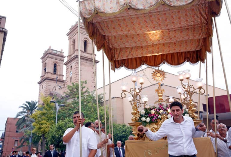 Por ello, mediada la tarde, las calles de Almàssera se llenan de los personajes más famosos salidos de la Biblia, con preciosos ropajes, camino de su misión y función en la procesión de Corpus, que es pura catequesis bíblica, teofórica, en honor al Santísimo Sacramento del Altar, titular de la Parroquia.