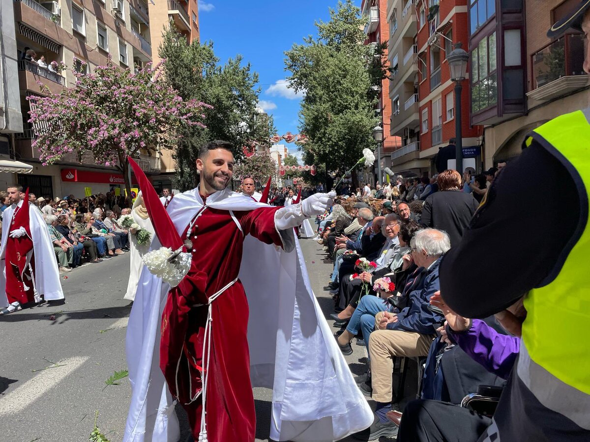 Todo muy diferente a lo que se espera de una Semana Santa, porque los valencianos somos así, y el «Cabanyal es diferente». Así, se reparten flores a los asistentes, principalmente claveles, pero también rosas, margaritas y otras flores que los participantes lanzan a sus allegados, mostrando alegría.