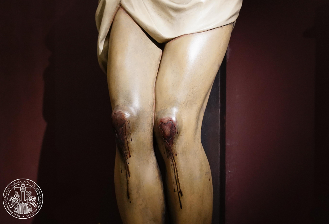 La limpieza también ha recuperado el esplendor y frescura de la sangre de las heridas y la firma de su autor en la cruz, el escultor José María Ponsoda Bravo.