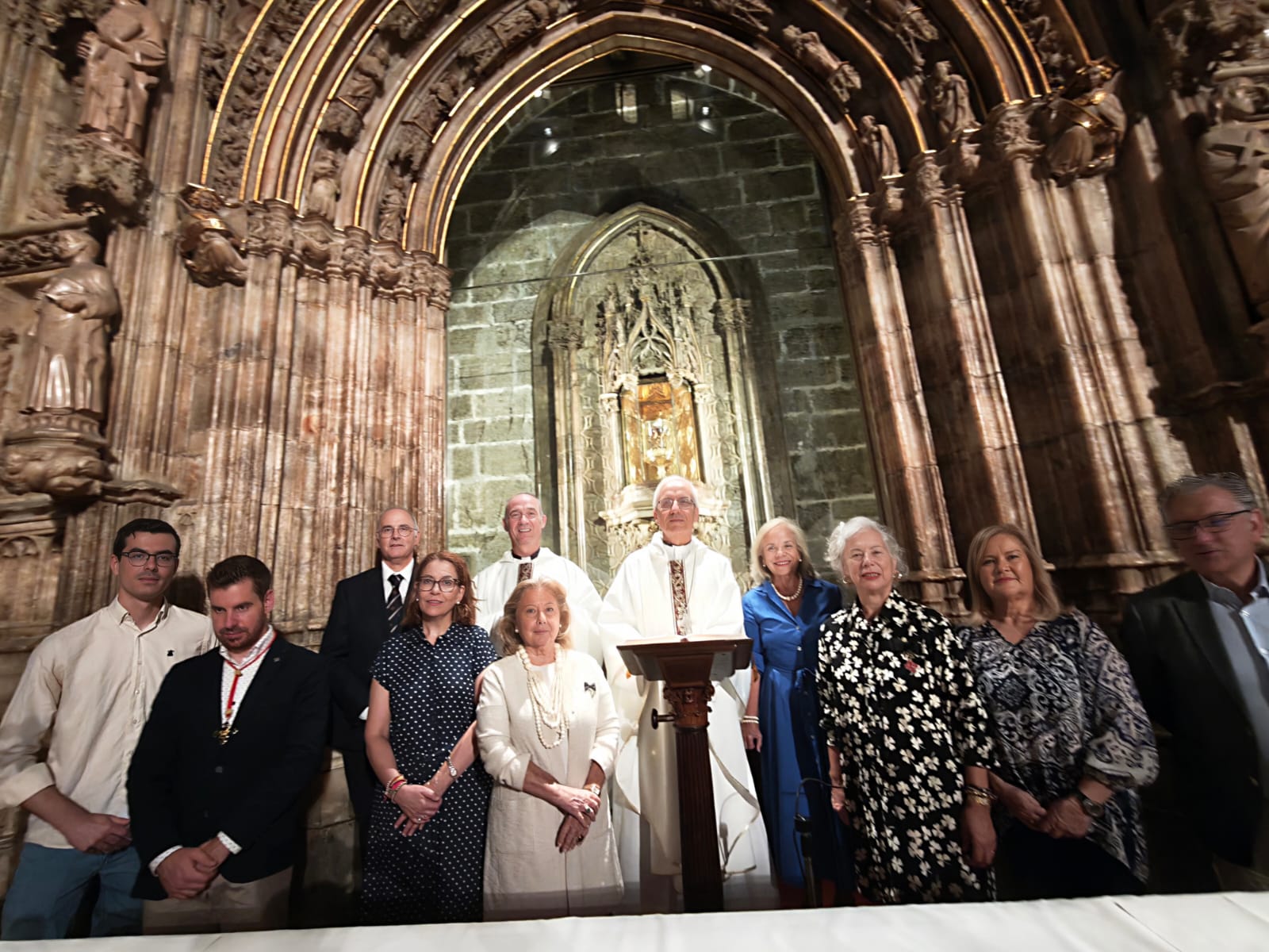 La Misa celebrada en la intimidad y recogimiento de dicha capilla fue oficiada en español, inglés y latín, asistiendo a la misma una representación de la Orden Ecuestre del Santo Sepulcro de Jerusalén de la sección del Reino de Valencia, presidida por Jorge Sardá, y una representación de la Cofradía del Santo Cáliz, encabezada por Pasqual Torrente Esteve.