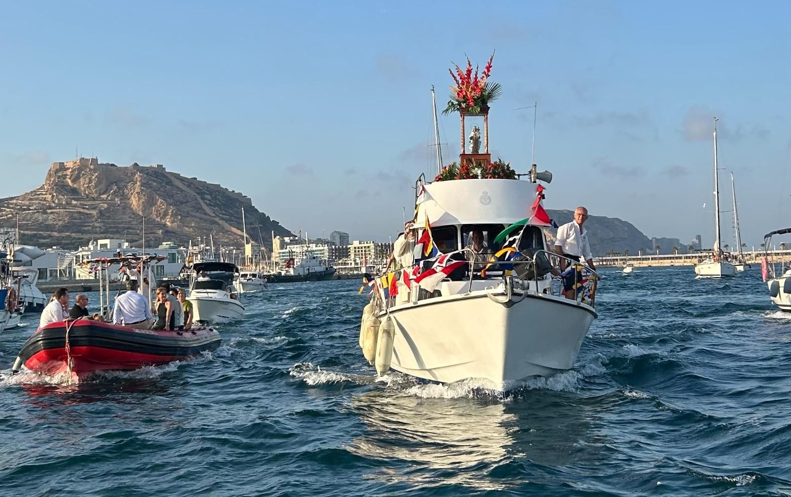El Real Club de Regatas de Alicante, RCRA, rinde homenaje a la Virgen del Carmen, patrona de los marineros, este miércoles con la tradicional procesión marinera y ofrenda floral