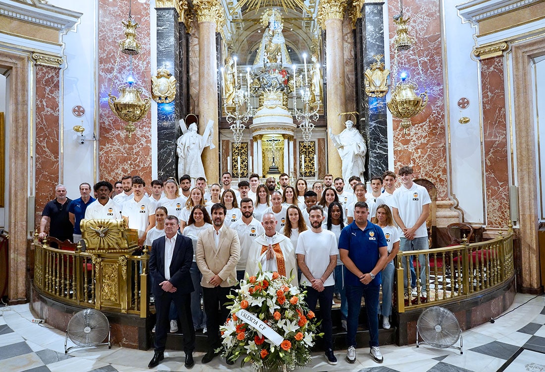 El Valencia CF ha visitado este viernes la Real Basílica de Nuestra Señora de los Desamparados, para realizar la tradicional ofrenda floral a la patrona, con motivo del inicio de temporada.