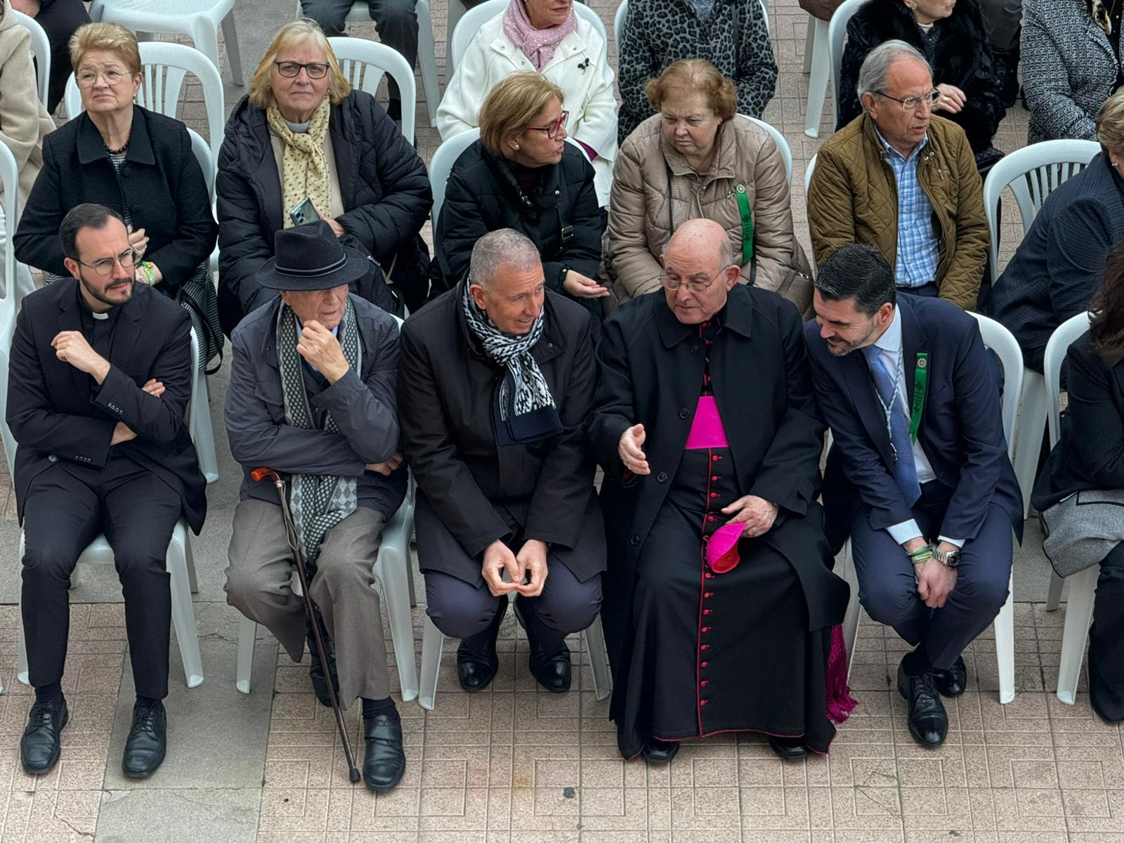 El acto contó con una nutrida representación institucional y eclesiástica. El Obispo de la diócesis, D. Casimiro López Llorente, encabezó la comitiva junto a la alcaldesa, Begoña Carrasco, y la cúpula de la Real Cofradía de Nuestra Señora del Lledó, liderada por su presidente José Manuel Bou.