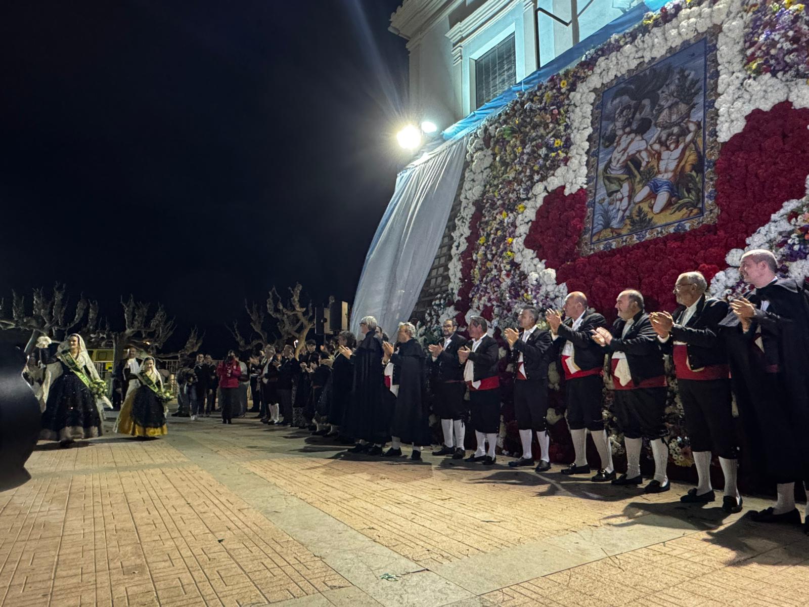 Desde primeras horas de la tarde, la Plaza Mayor se convirtió en el punto de partida de un desfile incesante. Representantes de las 19 gaiatas, colegios, asociaciones vecinales y casas regionales recorrieron el trayecto hasta la explanada de la Basílica. Allí, bajo la atenta mirada de la Patrona —ataviada para la ocasión con su histórico manto verde y la banda de Reina—, los participantes fueron tejiendo un tapiz floral que simboliza el cariño de la ciudad.