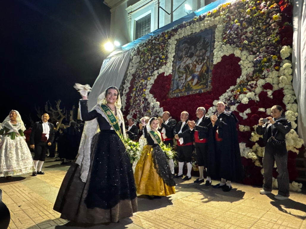 El momento de mayor intensidad emocional llegó con el cierre del desfile. Las reinas de las fiestas, Ana Colón y Clara Sanz, hicieron su entrada en la explanada para rendir homenaje a la «Lledonera«. No estuvieron solas; la solidaridad festiva se hizo patente con la presencia de soberanas de más de treinta municipios de la provincia y la participación especial de la Fallera Mayor de Valencia, subrayando el hermanamiento entre las grandes fiestas de la Comunitat.