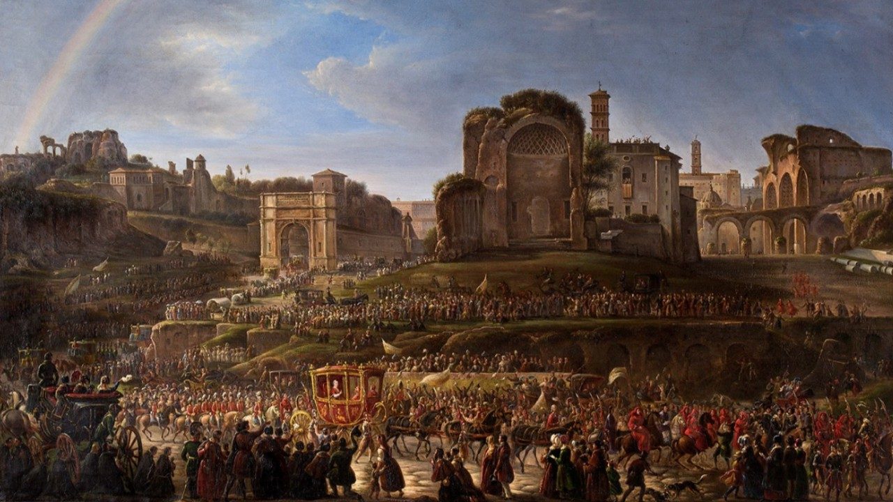 La procesión o Cabalgata marchaba lenta, solemne y magníficamente. Cientos de personas vestidas con sus mejores galas, telas preciosas, flecos y plumas de colores, algunos a pie, otros a caballo. Parecía que nunca terminaría. Una serpiente sinuosa, cuyo orden de precedencia estaba regulado con precisión milimétrica. Una jerarquía meticulosa y obsesiva, regulada por las distintas ordenanzas papales que se han sucedido a lo largo de los siglos. El Papa recién elegido que era coronado en San Pedro y ahora se dirigía a la Basílica de San Juan de Letrán para su entronización. Era su primer acto público oficial. “La cabalgata” mostraba a la gente congregada en las estrechas calles o plazas el rostro del nuevo Papa, pero también el de sus colaboradores y soldados y tenía por tanto un significado importante también como afirmación de su autoridad. “La cabalgata papal” – así se llamaba – era una ceremonia de orígenes muy antiguos y llena de complejos significados alegóricos, litúrgicos, religiosos y políticos.