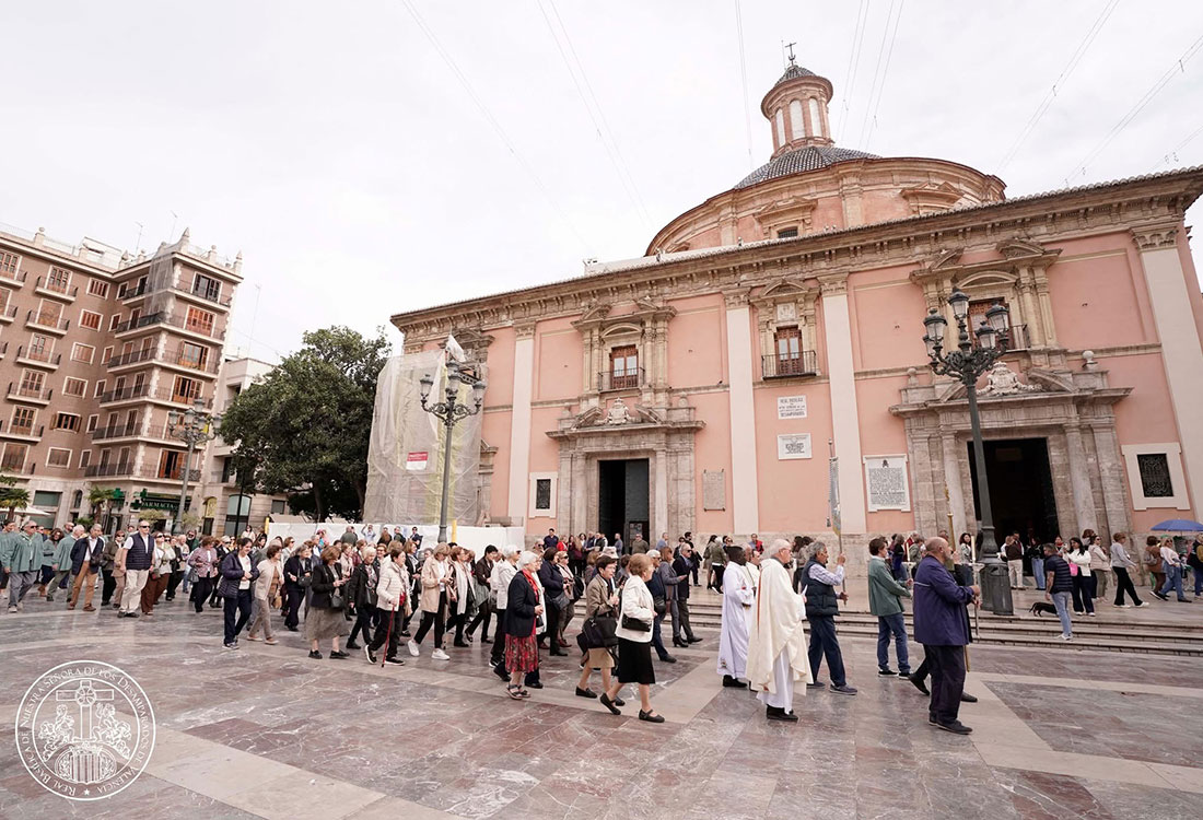 Un numeroso grupo de feligreses de las parroquias Nuestra Señora del Milagro y San Maximiliano María Kolbe de Valencia, y Parroquia San Martin Obispo de Alcàsser , junto a sus párrocos, llegaron en peregrinación hasta la Basílica de la Virgen de los Desamparados, uno de los templos jubilares de nuestra Archidiócesis de Valencia,en el Año Jubilar Peregrinos de la Esperanza convocado por el Papa