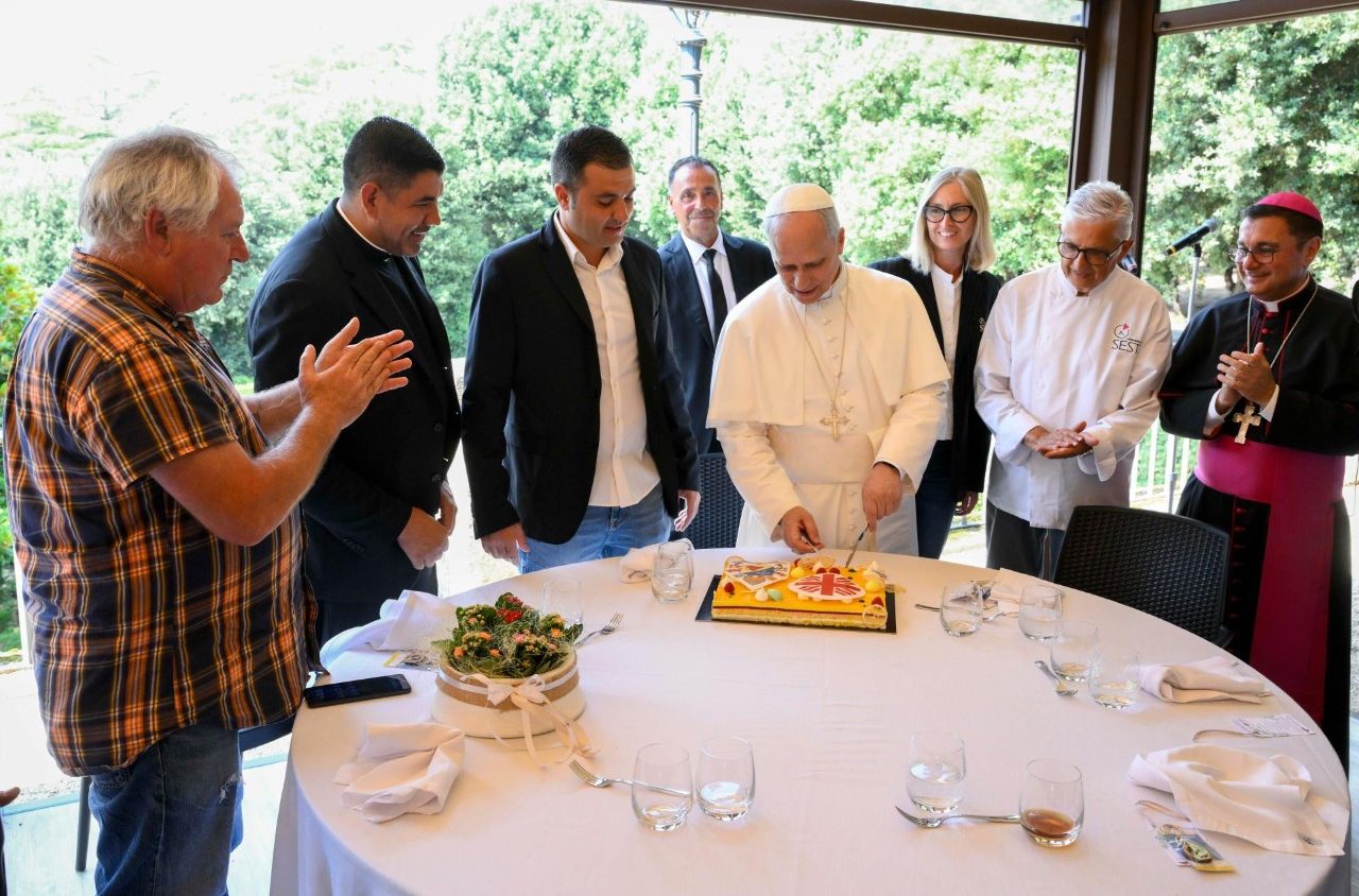 De entre las 110 personas atendidas por la Cáritas diocesana, frágiles económica y socialmente, que comieron en el Pabellón del Descanso, en el Borgo Laudato si’ de Castel Gandolfo con León XIV