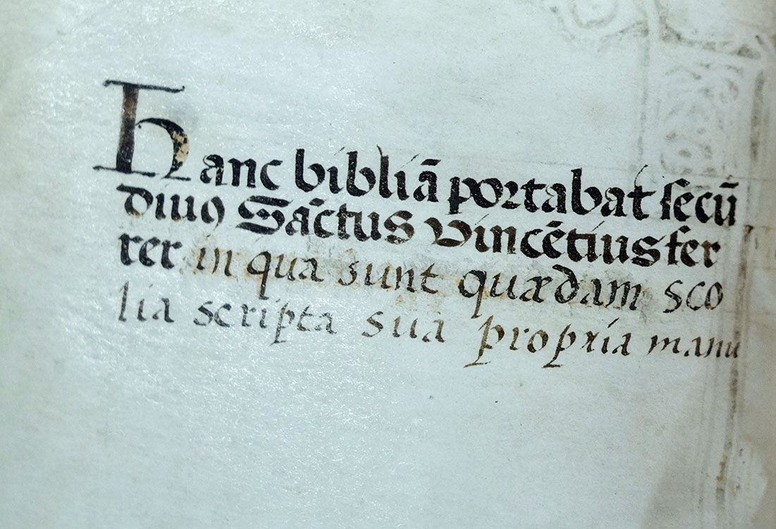 Entre los testimonios materiales vinculados a San Vicente Ferrer, pocos resultan tan elocuentes como las dos Biblias que se conservan hoy en la ciudad de Valencia. No son únicamente manuscritos medievales de extraordinario valor, sino objetos que permiten descubrir la relación del santo con las Sagradas Escrituras.