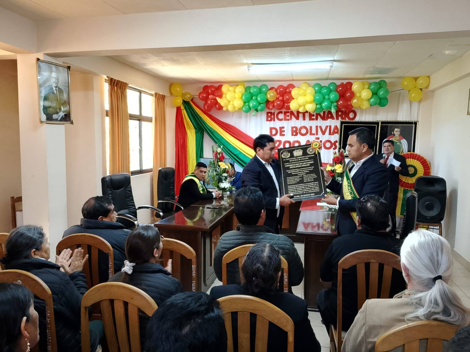 El Ayuntamiento de Anzaldo (Bolivia) llevó a cabo el 6 de agosto, día del Bicentenario del Estado Plurinacional de Bolivia, la entrega de una placa de reconocimiento por la labor que estamos realizando en el Municipio, desde la escuela, internado, parroquia y presencia escolapia.