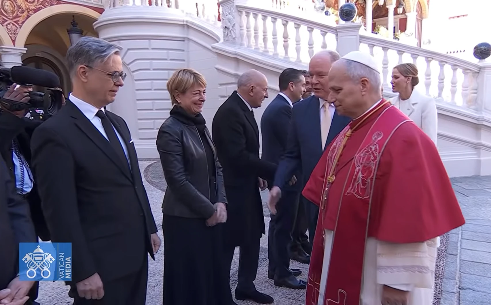 A su llegada al Palacio Grimaldi, el Pontífice fue acogido por el Príncipe Alberto II. Ambos mandatarios mantienen en estos momentos una reunión privada en la que se espera que discutan temas de relevancia ética y social, dada la particular relación jurídica entre la Santa Sede y el Principado.