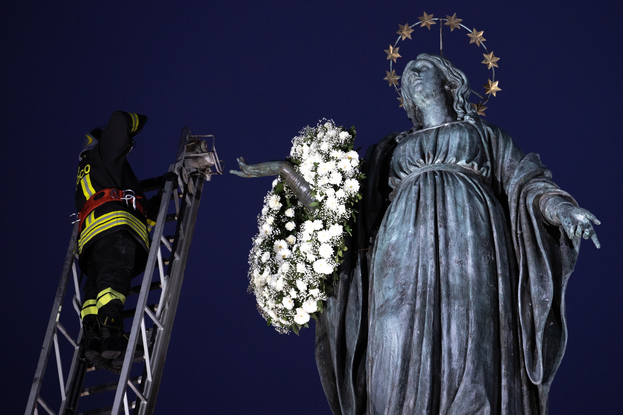 Respetando esta tradición que data de largos años, el Papa asiste cada 8 de Diciembre para homenajear a Maria con un acto de oración en presencia de los fieles, además los bomberos de Roma, también le rinden homenaje colocando una corona de flores en la estatua que se eleva muchos metros para poder ser colocada en un acto muy emotivo.