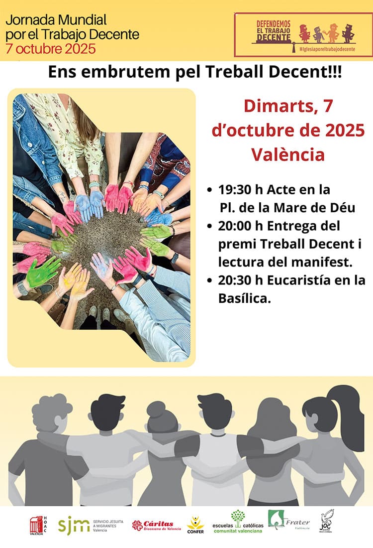 La red eclesial —integrada en Valencia por Cáritas, Hoac, Servicio Jesuita a Migrantes (SJM), Confer, Escuelas Católicas, Frater, y Juventud Obrera Cristiana (JOC)— denuncia ITD en su manifiesto que: «Resulta doloroso constatar que en pleno 2025, tras décadas de luchas obreras y sociales, aún tengamos que reclamar lo esencial: un salario justo, entornos de trabajo seguros y saludables, respeto a los horarios y al descanso, así como igualdad de trato sin discriminaciones de género, origen o situación administrativa», al tiempo que reclama «la continuidad del diálogo entre todos los agentes implicados en la mejora de las condiciones de trabajo hasta alcanzar el trabajo decente».