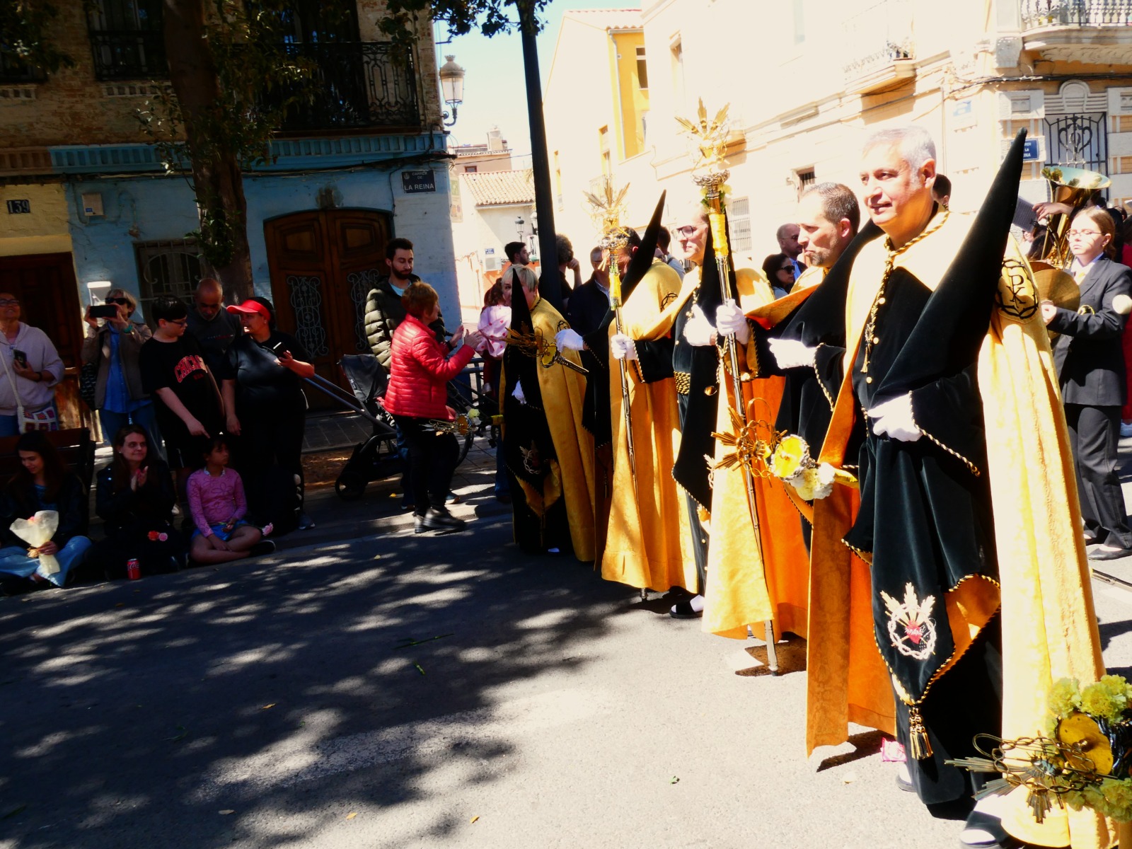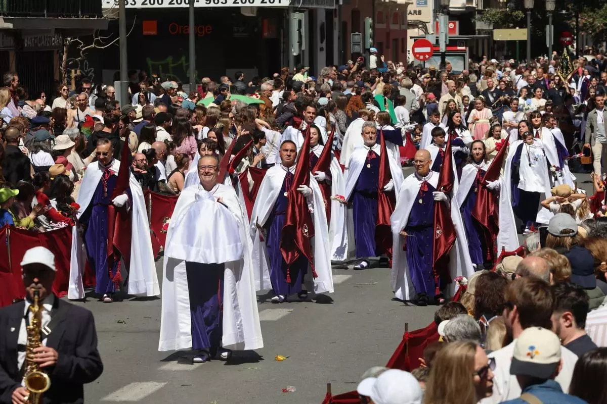 Si algo marca la diferencia en este Domingo de Gloria es la metamorfosis musical. El redoble severo del tambor ha sido reemplazado por la brillantez de las bandas de música valencianas. Al ritmo de pasodobles emblemáticos como «Paquito el Chocolatero» o «Valencia», las 30 hermandades han recorrido el itinerario con un paso ligero y festivo, contagiando el entusiasmo a miles de turistas y locales.