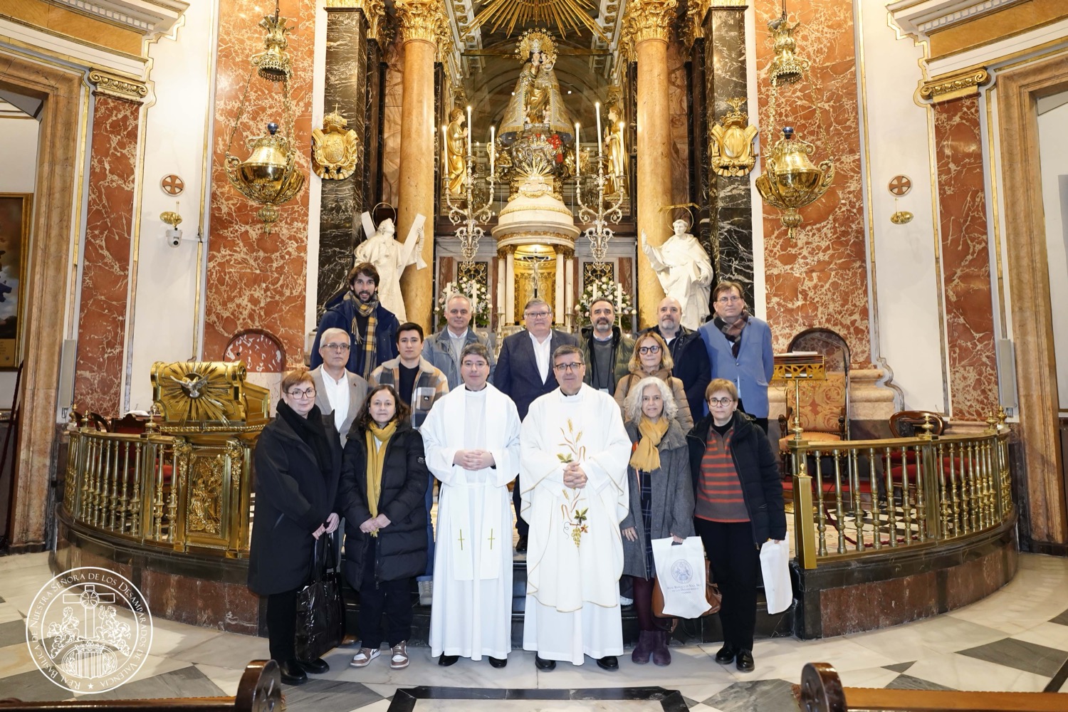 Melchor Seguí, rector de la Basílica, dio la bienvenida al grupo del Monasterio de Monserrat, comenzando la visita en el camarín de la Virgen, donde el rector les explicó el comienzo de la historia y devoción a la Mare de Déu. A continuación, recorrieron el MuMa, Museo Mariano de la Virgen de los Desamparados y, finalmente, participaron en una misa cantada por la Escolanía de la Virgen, predidida por Melchor Seguí, y concelebrada por el viceprior del Monasterio de Monserrat, Padre Bernat.
